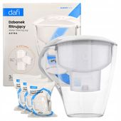 Ten wysokiej jakości dzbanek filtrujący Dafi ASTRA o pojemności 3 litrów wyróżnia się nie tylko eleganckim, białym designem, ale także zaawansowaną technologią filtracji. Wyposażony w 3 filtry Unimax, usuwa aż 100% aktywnego chloru, 99% pestycydów, ołowiu i fenolu, zapewniając krystalicznie czystą wodę o wyjątkowym smaku i zapachu.