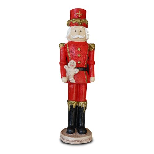 ✅ Figurka dekoracyjna dziadek do orzechów ma wysokość 40 cm usadowiona jest na podstawce o wymiarach 10 x 10 cm.