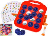 Zestaw zawiera podstawkę, w której umieszczamy wybrany przez siebie wzór obrazków. Wszystkie otworki na planszy zasłaniamy specjalnymi guziczkami. Grę rozpoczyna losowo wybrany uczestnik odsłaniając dwa guziczki. Jeżeli odsłonięte obrazki stanowią parę, to gracz zabiera guziczki i odsłania dalej. Jeśli nie trafi na kolejną parę - kolejka przechodzi na następnego gracza. Na koniec zliczamy zebrane guziczki - wygrywa osoba, która ma ich najwięcej. W celu podniesienia trudności gry można skorzystać z załączonej do zestawu klepsydry i odliczać nią czas do namysłu przy odsłanianiu obrazków :)