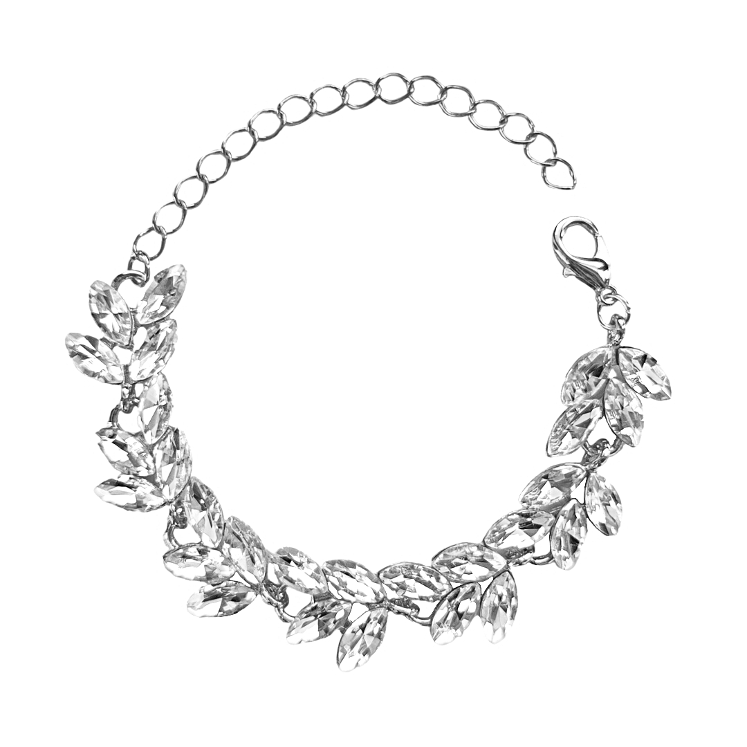 Elegancka srebrna bransoletka z regulowanym zapięciem, subtelnie łączy klasykę z nowoczesnością. Delikatne listki ozdobione lśniącymi kryształowymi cyrkoniami dodają jej wyjątkowego blasku, przyciągając wzrok. Ten model biżuterii doskonale dopełni zarówno wieczorowe jak i ślubne stylizacje.