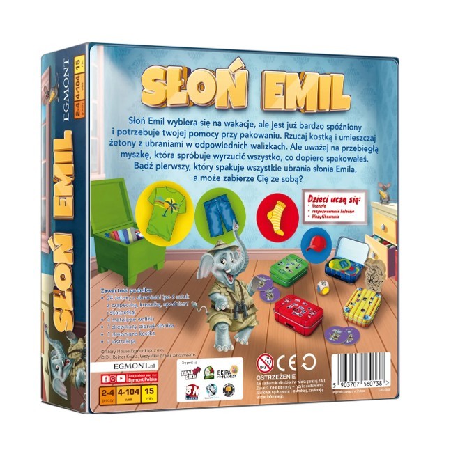 Egmont Gra Słoń Emil to idealny sposób na wspólne spędzanie czasu i naukę poprzez zabawę. Zbierz całą rodzinę, załóżcie walizki i bawcie się w świetnej atmosferze, ucząc się jednocześnie nowych umiejętności. Pamiętaj, że każdy moment z Emilkiem to niezapomniana przygoda!
