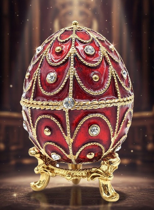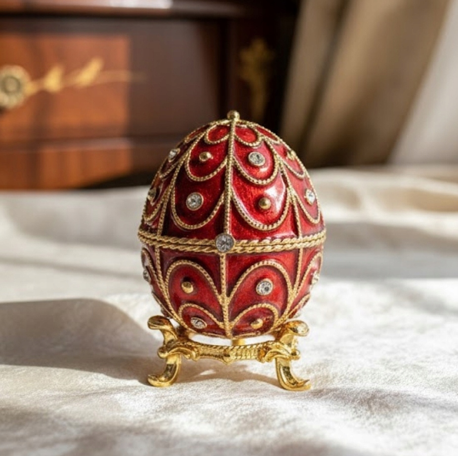 Elegancka szkatułka w kształcie jaja Fabergé to wyjątkowe połączenie klasycznego wzornictwa i funkcjonalności. Inspirowana słynnymi dziełami jubilerskimi z XIX wieku, zachwyca bogatymi zdobieniami i precyzją wykonania. To doskonały wybór dla osób, które cenią elegancję, historię oraz ponadczasowy styl.