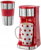 Łatwość obsługi to jego znak rozpoznawczy – po prostu napełnij zbiornik wodą do 420 ml, dodaj kawę i naciśnij przycisk, a reszta dzieje się automatycznie. Kompaktowe wymiary (szer. 13,5 × wys. 28 × gł. 13,8 cm) czynią go idealnym towarzyszem w małych przestrzeniach, oferując nie tylko funkcjonalność, ale i elegancki, czerwony design, który wzbogaca codzienność.