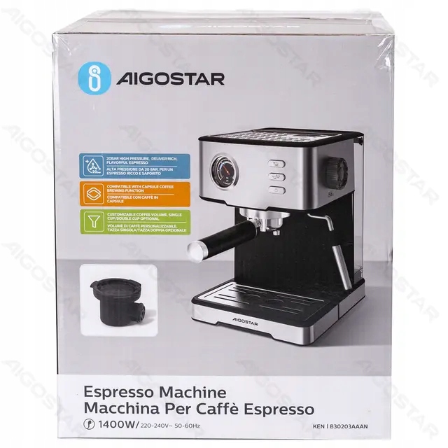 Stwórz kawę jak z prawdziwej kawiarni we własnym domu!Nowoczesny ekspres ciśnieniowy kolbowy o ciśnieniu 20 bar pozwala przygotować intensywne, pełne aromatu espresso oraz szeroką gamę kaw mlecznych. To idealny wybór dla osób, które cenią smak, wygodę i stylowe wyposażenie kuchni.