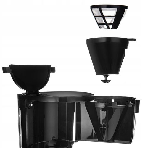 Ekspres gwarantuje pełną wygodę, z wyjmowanym dzbankiem, który pozwala na nalewanie kawy nawet w trakcie parzenia, oraz płytą podgrzewającą utrzymującą ciepło do 40 minut. Dodatkowy schowek na kabel i wskaźnik poziomu wody sprawiają, że obsługa jest intuicyjna, a urządzenie zawsze gotowe do działania w każdej kuchni.