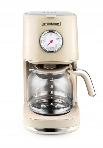 Ten wysokiej jakości ekspres do kawy przelewowy Kitchencook kolekcja RETRO o pojemności 1,5 L pozwala na przygotowanie aż 12 filiżanek aromatycznej kawy w jednym cyklu. Jego precyzyjny szklany dzbanek ze skalą umożliwia dokładne odmierzenie wody, a designerski wskaźnik monitoruje postęp ekstrakcji przez około 7 minut, zapewniając zawsze spójny i bogaty smak, który delektuje zmysły.