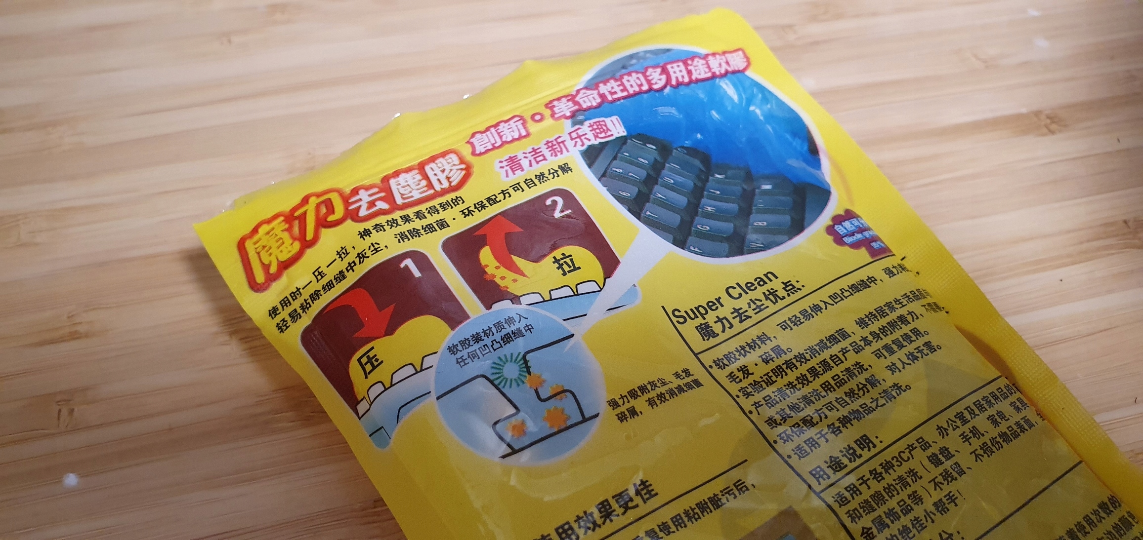 【Łatwy w użyciu】 Weź kawałek żelu czyszczącego, ugniataj go w kulkę, powoli wsuń żel czyszczący do klawiatury, otworu samochodowego i innej wytrzymałej powierzchni, a następnie wyciągnij, kurz zostanie zabrany z żelem czyszczącym.