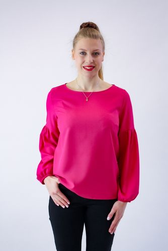 Nie ważne, jaki jest Twój rozmiar — od 38 do 46, w tym również rozmiary plus size — polski producent zadbał o to, aby bluzka doskonale leżała na każdej sylwetce. Okrągły dekolt nadaje jej prostoty i klasycznego wyglądu, a długi rękaw z bufiastymi mankietami dodaje jej nieco oryginalności.