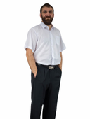 Elegancka, wizytowa koszula męska z krótkim rękawem koloru białego. Gładka koszula męska. Klasyczny krój koszuli regular (bez taliowania, luźny krój). Koszula firmy Laviino (dawne Lanvino) o bardzo dobrym stosunku jakości do ceny, ciesząca się dużą popularnością wśród klientów.
