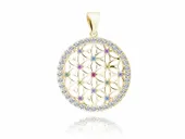Dodaj do swojego koszyka nasz elegancki pozłacany srebrny okrągły wisiorek z kolorowymi i białymi cyrkoniami i podaruj sobie lub bliskiej osobie coś naprawdę wyjątkowego!