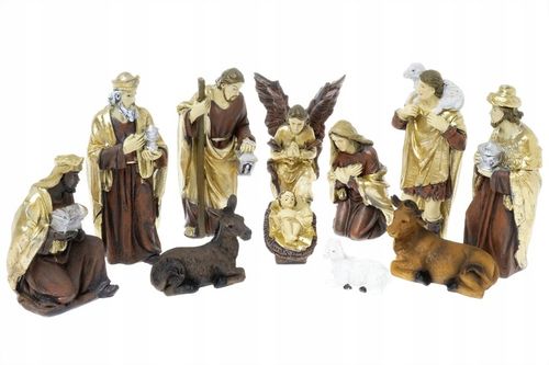 Ten elegancki zestaw figur szopki bożonarodzeniowej to prawdziwa ozdoba każdego domu. Ręcznie malowane i zdobione złotymi akcentami, figurki tchnął w każdą aranżację magię świąt.