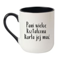 Kubek „Pani wielce kształcona, kurła jej mać” to dla tych, którzy wiedzą, że nie trzeba mieć tytułów, by mieć coś do powiedzenia. Ten kubek świetnie oddaje sarkastyczny urok osób, które patrzą na pretensjonalne "wielce kształcone" z dystansem. Idealny sposób na przypomnienie sobie, że to, co naprawdę się liczy, to autentyczność, a nie "wielkie" słowa.