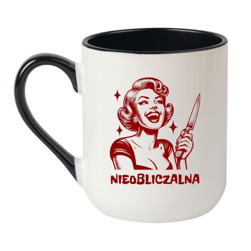 Kubek „Nieobliczalna” z obrazkiem kobiety z nożem to świetny wybór, by pokazać światu, że jesteś gotowa na wszystko. Zamów teraz i poczuj moc, która bije z każdego łyka Twojego ulubionego napoju!