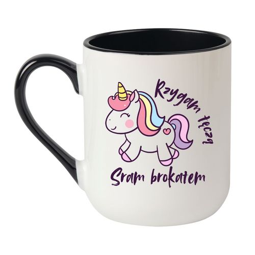 Kubek „Rzygam tęczą, sram brokatem” to najlepszy sposób na dodanie odrobiny szaleństwa do każdego dnia. Zamów teraz i ciesz się niepowtarzalnym kubkiem, który z pewnością przyciągnie uwagę!