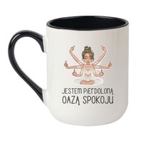 Niektórzy chodzą na jogę, niektórzy piją melisę, a Ty? Ty po prostu jesteś. Pieroloną oazą spokoju – bez filtrów, bez lukru, za to z pełnym arsenałem cierpliwości i... środkowego palca. Ten kubek z mocnym napisem i grafiką kobiety-bogini zen to perfekcyjna broń przeciwko codziennemu chaosowi. No i świetny śmieszny prezent z wulgarnym napisem dla kobiet z dystansem.