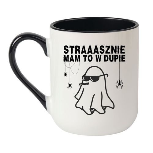 Kubek „Strasznie mam to w dupie” to mistrzowski mix czarnego humoru, luzu i halloweenowej atmosfery. Świetny do codziennej kawy, herbaty albo… magicznego napoju, który pomaga przetrwać dzień.