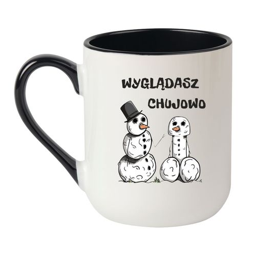 Zimowe poranki bywają trudne, a kawa smakuje najlepiej wtedy, gdy podana jest w kubku z charakterem. Jeśli szukasz zimowego kubka bez cenzury, który rozgrzeje nie tylko napój, ale i atmosferę, chamski kubek z napisem „Wyglądasz chujowo” to absolutny must-have! Motyw dwóch bałwanów i szczerej, bezkompromisowej opinii sprawi, że każdy łyk herbaty czy gorącej czekolady będzie towarzyszył wybuchom śmiechu. To chamski kubek na zimę dla ludzi z dystansem, którzy potrafią żartować z siebie i innych – idealny jako chamski prezent świąteczny lub gadżet na zimowe wieczory pod kocem.