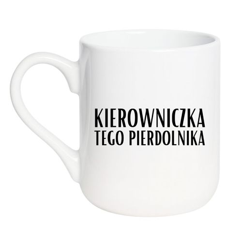 Kubek z napisem kierowniczka tego pierdolnika to śmieszny kubek do pracy dla szefowej z dystansem, łączący mocny humor z codzienną funkcjonalnością biurową.