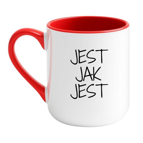 Ten kubek działa, bo napis jest krótki, naturalny i bardzo rozpoznawalny. „Jest jak jest” nie próbuje na siłę rozśmieszać. To tekst, który brzmi jak prawdziwy komentarz do codzienności, dlatego łatwo zapada w pamięć i nie traci sensu po pierwszym użyciu.