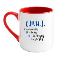Kubek „C.H.U.J. - Cudowny, Hojny, Uprzejmy, Jedyny” to świetny sposób, by pokazać, że można być fajnym, nie tracąc przy tym humoru i niekonwencjonalności. Zamów teraz i pozwól sobie na szczyptę zabawy w codziennych rytuałach!