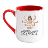 Niektórzy chodzą na jogę, niektórzy piją melisę, a Ty? Ty po prostu jesteś. Pieroloną oazą spokoju – bez filtrów, bez lukru, za to z pełnym arsenałem cierpliwości i... środkowego palca. Ten kubek z mocnym napisem i grafiką kobiety-bogini zen to perfekcyjna broń przeciwko codziennemu chaosowi. No i świetny śmieszny prezent z wulgarnym napisem dla kobiet z dystansem.