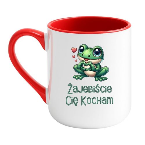 Wyznanie miłości nie musi być na kolanach. Może być w piżamie, z kawą w ręku, z tym właśnie kubkiem. Pokaż komuś, że go kochasz – nie na poważnie, ale na serio. Z humorem, z sercem, z żabą. Bo czasem jedno „zajebiście” znaczy więcej niż tysiąc „bardzo”.