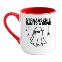 Kubek „Strasznie mam to w dupie” to mistrzowski mix czarnego humoru, luzu i halloweenowej atmosfery. Świetny do codziennej kawy, herbaty albo… magicznego napoju, który pomaga przetrwać dzień.