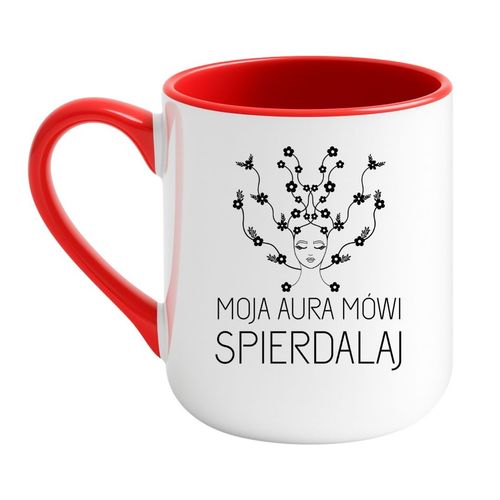 Jeśli masz dość udawania, że wszystko jest okej – zamów kubek „Moja aura mówi spierdalaj”. To śmieszny kubek na prezent dla osoby, która ceni autentyczność bardziej niż poprawność.