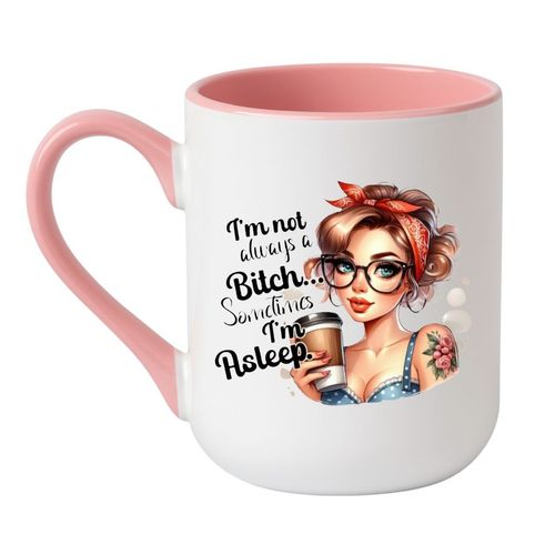 Jeśli masz silny charakter, cięty język i nie boisz się mówić wprost, ten kubek jest dla Ciebie! Napis "I'm not always a bitch. Sometimes I'm asleep." idealnie oddaje ducha osób, które nie przebierają w słowach, ale robią to z urokiem i humorem. Doskonały dla tych, którzy potrafią śmiać się z siebie i nie przejmują się opinią innych.