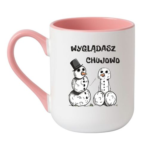 Zimowe poranki bywają trudne, a kawa smakuje najlepiej wtedy, gdy podana jest w kubku z charakterem. Jeśli szukasz zimowego kubka bez cenzury, który rozgrzeje nie tylko napój, ale i atmosferę, chamski kubek z napisem „Wyglądasz chujowo” to absolutny must-have! Motyw dwóch bałwanów i szczerej, bezkompromisowej opinii sprawi, że każdy łyk herbaty czy gorącej czekolady będzie towarzyszył wybuchom śmiechu. To chamski kubek na zimę dla ludzi z dystansem, którzy potrafią żartować z siebie i innych – idealny jako chamski prezent świąteczny lub gadżet na zimowe wieczory pod kocem.
