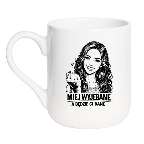 Kubek z napisem „Miej wyjebane a będzie ci dane” to ceramiczny kubek prezentowy dla osób, które lubią mocny humor, bezpośredni przekaz i gadżety z charakterem. Najczęściej wybierany jest jako prezent dla bliskiej znajomej, partnerki, przyjaciółki albo kogoś, z kim łączy Cię swobodna relacja i podobny styl żartów. To kubek bez cenzury, który łączy codzienną użyteczność z wyrazistym tekstem i grafiką budującą natychmiastowy efekt.