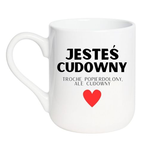 Nie każdy jest idealny, ale ten kubek udowadnia, że nawet lekkie „pokręcenie” może być cudowne! Śmieszny kubek bez cenzury z napisem „Jesteś cudowny, trochę popierdolony, ale cudowny” to najlepszy sposób, by z dystansem i humorem powiedzieć komuś, jak bardzo go kochasz. To propozycja dla osób, które mają luz, cięty język i nie boją się szczerości w wersji bez cenzury. Idealny kubek na prezent na dzień chłopaka, walentynki, rocznicę albo po prostu… dla beki!