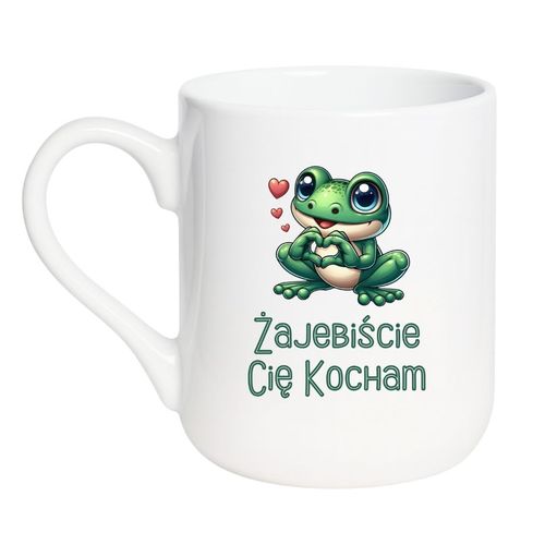 Miłość nie zawsze musi być cukierkowa. Czasem jest zajebiście szczera. Ten kubek z napisem "Zajebiście Cię kocham" i żabką robiącą serduszko to idealny sposób, żeby powiedzieć „kocham Cię” bez lukru, ale z charakterem. Bo nie każdy romantyk nosi różę – niektórzy mają żabę i dobry tekst z jajem.