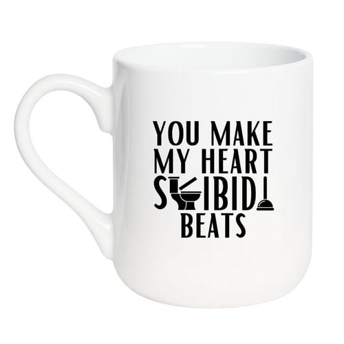 Nie każda miłość wygląda jak z bajki. Czasem bardziej przypomina mema, który rozumieją tylko wtajemniczeni. Ten kubek z napisem „You Make My Heart Skibidi Beats” to hołd dla absurdalnego humoru, który śmieje się z banałów i romansów jak z taniej telenoweli. Oryginalny prezent z totalnym dystansem, dla kogoś, kto wie, że miłość to nie tylko serduszka – to też wspólne memy, cringe i... toaleta z humorem.