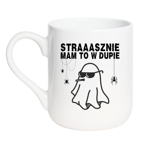 Kubek „Strasznie mam to w dupie” to mistrzowski mix czarnego humoru, luzu i halloweenowej atmosfery. Świetny do codziennej kawy, herbaty albo… magicznego napoju, który pomaga przetrwać dzień.