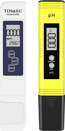 Mierniki pH i TDS są lekkie i przenośne. Posiadają funkcję automatycznej kalibracji, blokowania wyniku pomiaru po naciśnięciu przycisku „HOLD” oraz automatycznego wyłączania po kilku minutach nieużywania.