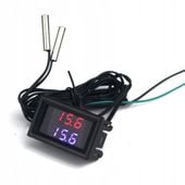 Wyświetlacz LCD o wymiarach 36mm x 17mm jest czytelny nawet w trudnych warunkach oświetleniowych, a kompaktowa obudowa (48x29x22mm) w czarnym kolorze integruje się dyskretnie z panelami przemysłowymi czy laboratoryjnymi. Długie przewody z sondami (950mm) oraz przewód zasilający (150mm) oferują elastyczność montażu, czyniąc urządzenie niezastąpionym w aplikacjach wymagających ciągłego nadzoru.