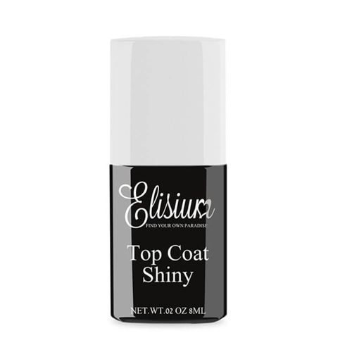 Nałóż cienką warstwę Elisium Top Coat Shiny na uprzednio utwardzony kolorowy lakier hybrydowy i utwardź w lampie UV/LED. Top Coat Shiny nie wymaga przecierania cleanerem.