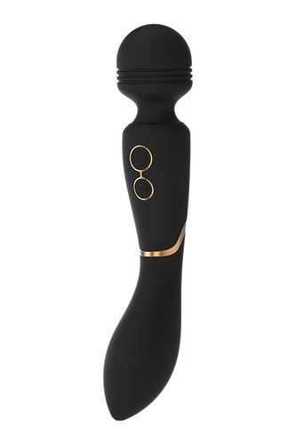 Stymulator różdżki Céline z kolekcji Elite firmy Dream Toys to czarna różdżka ze stylowymi złotymi akcentami, solidną rączką, zaokrągloną główką i lekko elastyczną szyjką