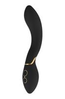 Wibrator Josephine z kolekcji Elite firmy Dream Toys to czarny wibrator ze stylowymi złotymi akcentami, zakrzywionym kształtem i dość dużą, elastyczną główką