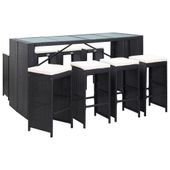 Dzięki zastosowaniu odpornego na wodę rattanu PE zestaw barowy na patio jest łatwy w czyszczeniu, wytrzymały i odpowiedni do codziennego użytkowania na zewnątrz. Składa się z eleganckich stołków i stołu w nowoczesnym stylu. Malowana proszkowo, stalowa rama czyni meble mocnymi i stabilnymi, a jednocześnie jest lekka, co umożliwia swobodne przestawianie elementów kompletu i dopasowanie do dowolnego ustawienia. Zestaw jest dostarczany wraz z bardzo wygodnymi, grubo wyściełanymi poduszkami na siedziska, zapewniającymi najwyższy komfort. Ich łatwe w utrzymaniu, poliestrowe powłoczki można zdjąć i wyprać. Montaż mebli jest łatwy.