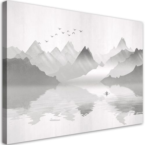 Emaga Obraz na płótnie, Góry nad jeziorem abstrakcja - 120x80 to idealne rozwiązanie dla tych, którzy pragną wprowadzić do swojego wnętrza powiew nowoczesności i artystycznej elegancji. Ten wyjątkowy obraz stworzony z myślą o największych miłośnikach sztuki, łączy w sobie nowoczesną technologię z pięknem natury. Dzięki technologii drukowania UVgel FLXfinish, każdy detal obrazu jest szczegółowy i żywy, a kolory nasycone będą cieszyć oko przez lata.