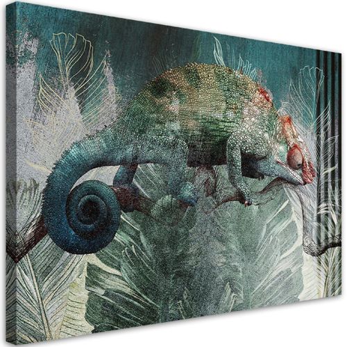 Kameleon w dżungli to wyjątkowy obraz na płótnie, który napełni Twoje wnętrze niepowtarzalną energią i kolorami tropikalnej dżungli. W rozmiarze 60x40 cm, ten obraz stworzy wspaniałą atmosferę, która ożywi każdego pomieszczenie, od salonu po sypialnię. Jest to produkt stworzony z myślą o osobach, które pragną wprowadzić do swojego otoczenia odrobinę natury i egzotyki.