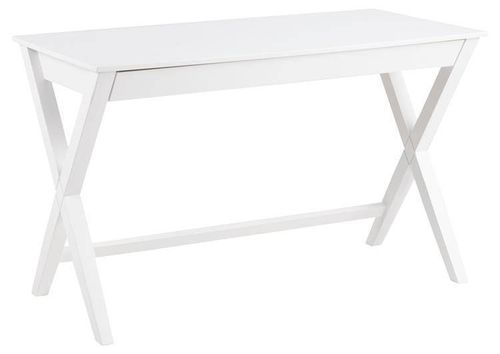 Białe biurko Writex zachwyci swoim wyglądem nawet najbardziej wymagających estetów. Skrzyżowane nóżki wykonane z drewna kauczukowego, podobnie jak cały mebel, stanowią ciekawy element designerski. Biurko to zostało zaopatrzone w wysuwaną, praktyczną szufladę. Ten stabilny, estetyczny i stylowy mebel znajdzie miejsce w każdym pomieszczeniu.