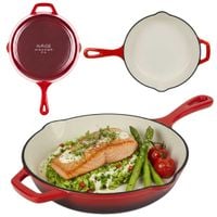 Odkryj trwałą patelnię żeliwną 26 cm w eleganckim czerwonym kolorze. Żeliwo doskonale rozprowadza i utrzymuje ciepło, gwarantując perfekcyjne rezultaty smażenia, duszenia i zapiekania. Emaliowana powłoka chroni przed korozją i jest wyjątkowo łatwa w czyszczeniu. Używaj jej na wszystkich kuchenkach, w tym indukcyjnych, oraz bezpiecznie w piekarniku.