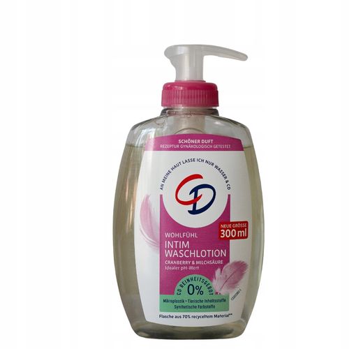 Płyn do higieny intymnej CD z ekstraktem z żurawiny i kwasem mlekowym zapewnia szczególnie delikatne oczyszczenie okolic intymnych. Formuła z naturalnym ekstraktem z żurawiny i kwasem mlekowym wspiera naturalną funkcję ochronną okolic intymnych i utrzymuje stałe pH.