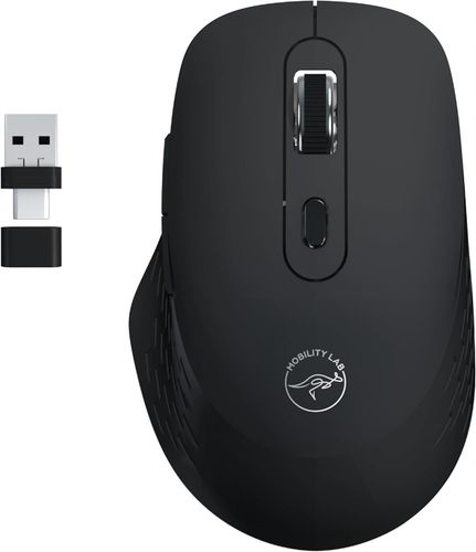 Odkryj bezprzewodową mysz Mobility Lab Omega, łączącą łączność Bluetooth z odbiornikiem 2,4 GHz. Ciesz się cichym klikaniem, miękką fakturą i regulowaną precyzją. Wyposażona w boczne przyciski ułatwiające nawigację, idealnie nadaje się do codziennego użytku, oszczędzając jednocześnie energię