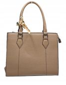 Torebkę można nosić w ręku dzięki mocnym uchwytom. Dodatkowo do torebki dołączony jest pasek w kolorze torebki z możliwością regulacji.