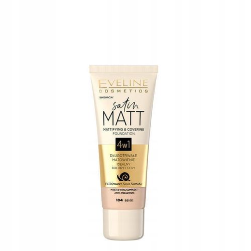 Eveline Podkład Satin Matt 4w1 104 Beige to doskonały wybór dla każdej kobiety, która pragnie osiągnąć perfekcyjny wygląd swojej cery. Dzięki innowacyjnej formule oraz aksamitnej konsystencji, ten podkład nie tylko zapewnia znakomite krycie, ale również dba o skórę, pozostawiając ją gładką i promienną przez cały dzień.