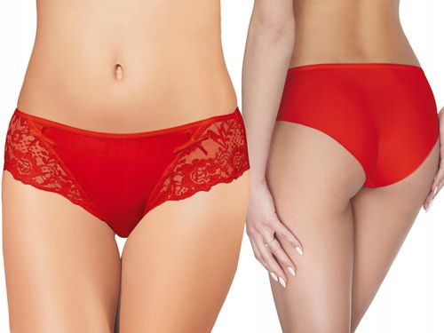 Klasyczne, wygodne figi damskie, z koronkowym wykończeniem. Z tyłu gładkie, wykonane z miękkiej mikrofibry. Dostępne w kilku, delikatnych odcieniach